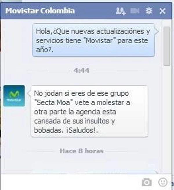 La compañía de Movistar los amenazó con llamar a la policía cibernética y acusarlos de vandalismo cibernético.
